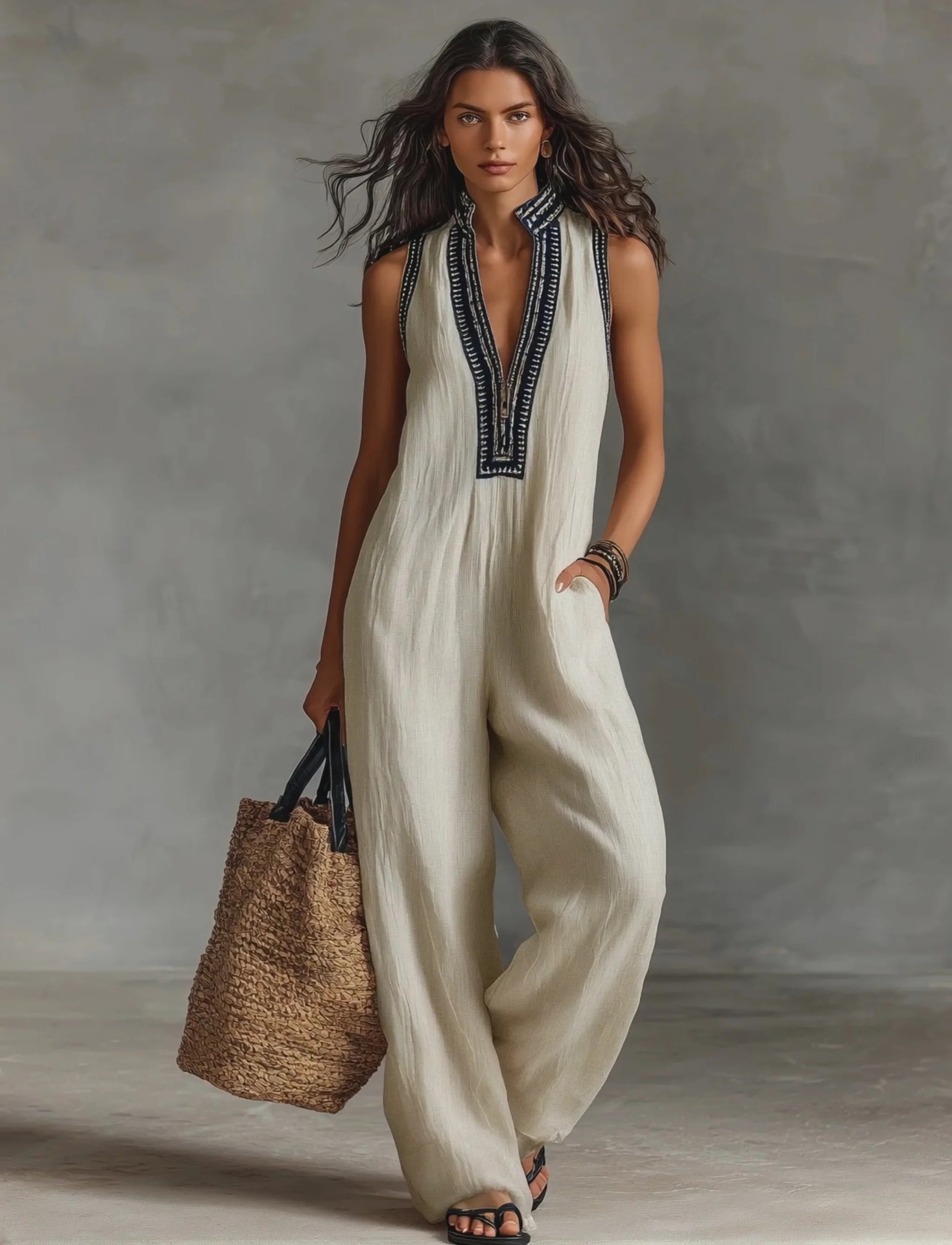 Women's Simple Linen-blend Sleeveless Jumpsuit